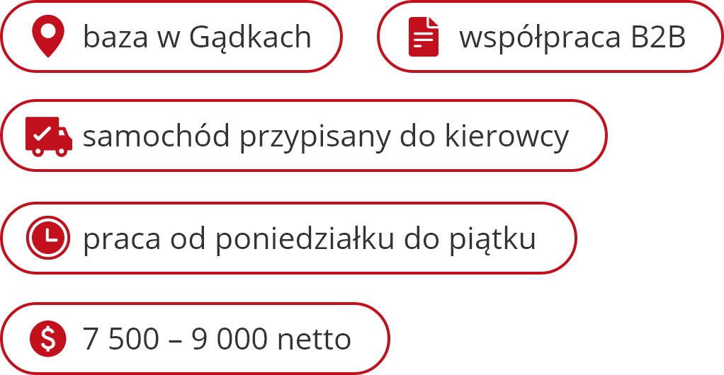 dodatkowo płatne punkty załadunku/rozładunku: 48 zł netto dla tras lokalnych, 25 zł netto dla tras krajowych i międzynarodowych,